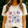 aquarela conchas estampas exclusivas estilo unico estrelas-do-mar integrar moda e conforto moda feminina t-shirt marinha